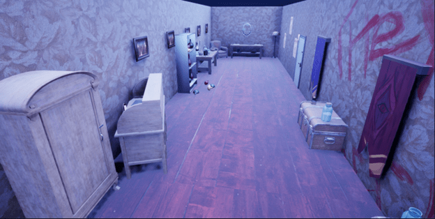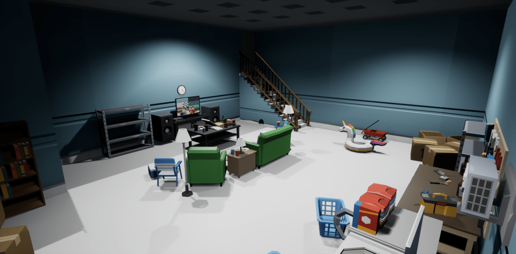 Roles in game: Worked on making the Basement room for the level. I made the blockout and added in final assets.