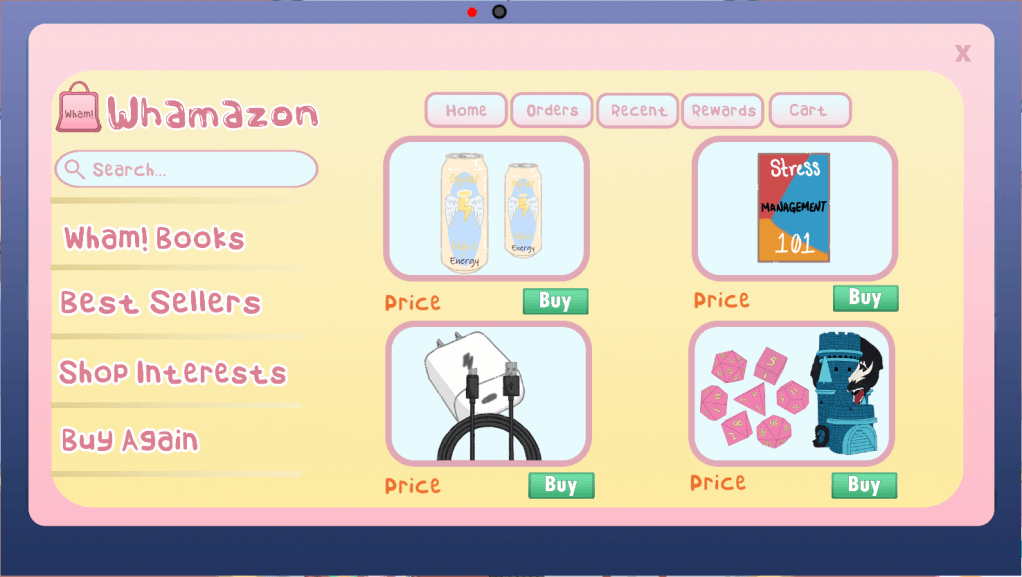 Roles in Game: I was in charge of making the UI and making it look clean and neat. I added new assets and chose between different variations of art assets to see what would look the best in the UI.